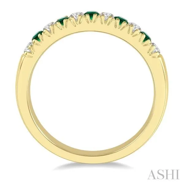 2 MM Emerald and 1/5 Ctw Round Cut Diamond Precious Wedding Band in 14K Yellow Gold Image 2 Adler's Diamonds Saint Louis, MO