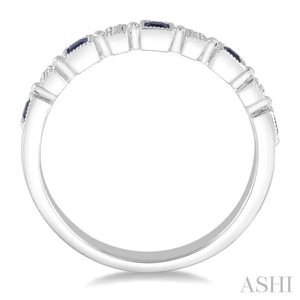 2 MM Princess Shape Sapphire and 1/50 Ctw Round Diamond Precious Stone Wedding Band in 14K White Gold Image 2 Adler's Diamonds Saint Louis, MO