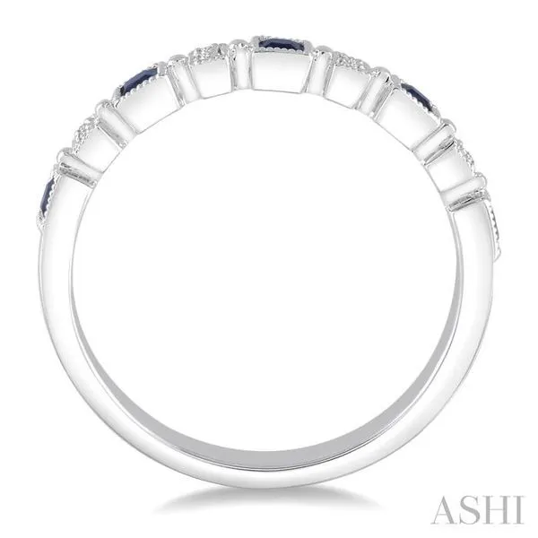 2 MM Princess Shape Sapphire and 1/50 Ctw Round Diamond Precious Stone Wedding Band in 14K White Gold Image 4 Adler's Diamonds Saint Louis, MO