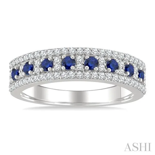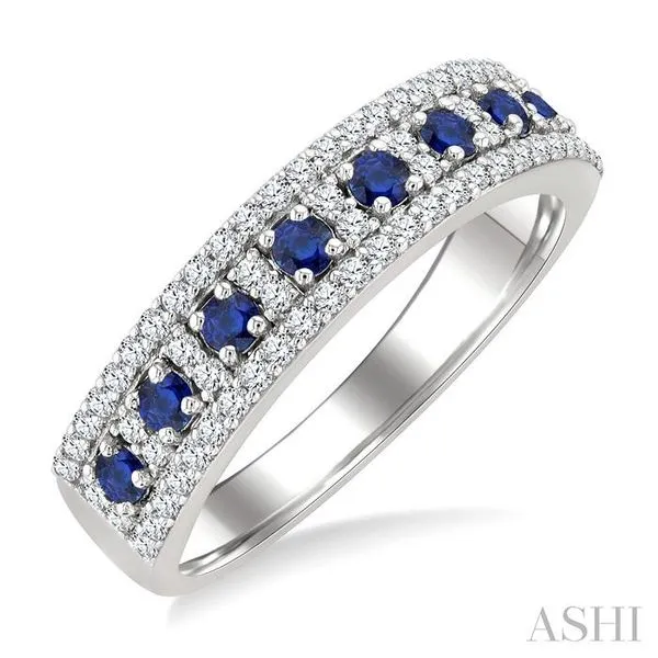 2 MM Round Shape Sapphire and 1/3 Ctw Round Cut Diamond Precious Fashion Band in 14K White Gold Image 2 Adler's Diamonds Saint Louis, MO