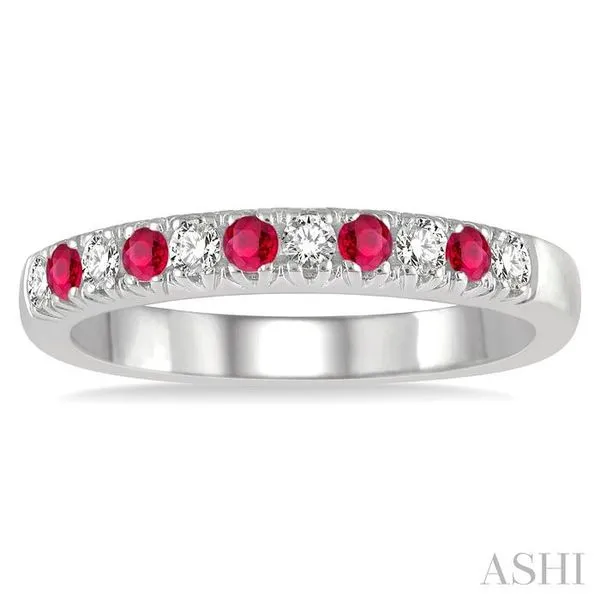 2 MM Ruby and 1/5 Ctw Round Cut Diamond Precious Wedding Band in 14K White Gold Image 2 Adler's Diamonds Saint Louis, MO