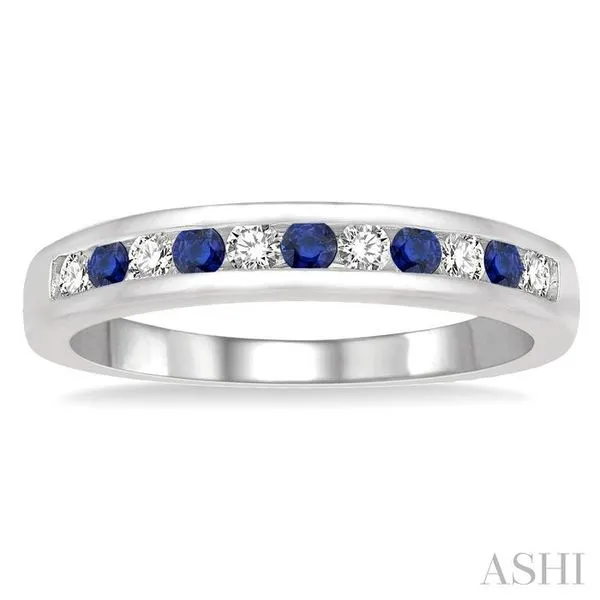 2 MM Sapphire and 1/5 Ctw Round Cut Diamond Precious Wedding Band in 14K White Gold Image 2 Adler's Diamonds Saint Louis, MO