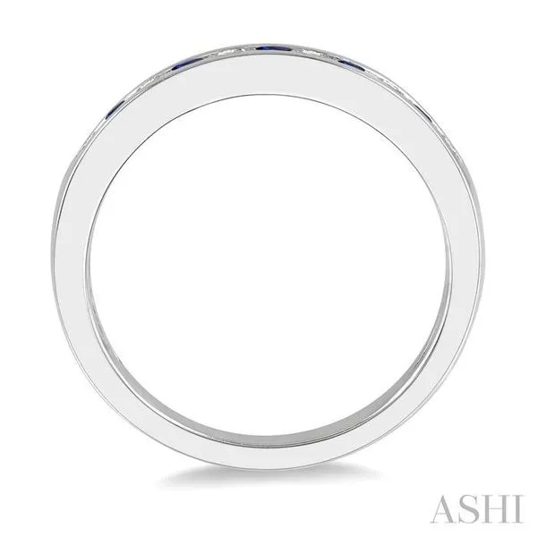2 MM Sapphire and 1/5 Ctw Round Cut Diamond Precious Wedding Band in 14K White Gold Image 3 Adler's Diamonds Saint Louis, MO