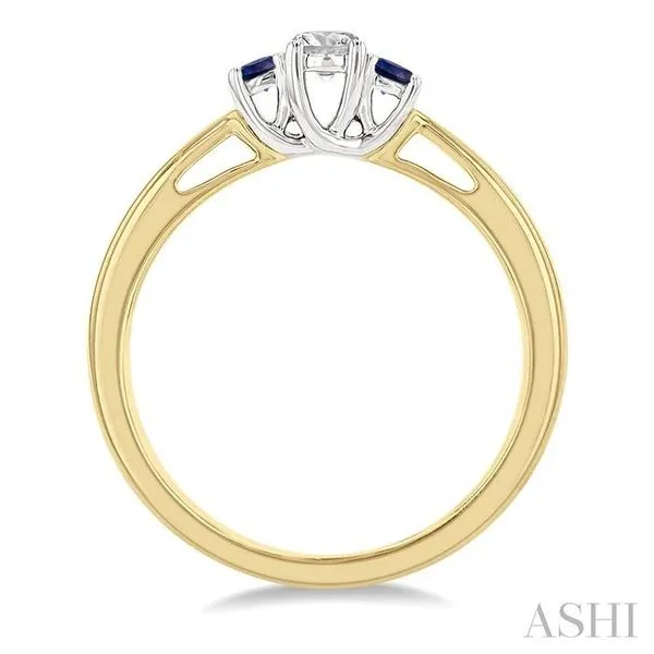 2.15 MM Round Shape Sapphire and 1/6 Ctw Past, Present and Future Round Cut Diamond Precious Ring in 14K Yellow and White Gold Image 2 Adler's Diamonds Saint Louis, MO