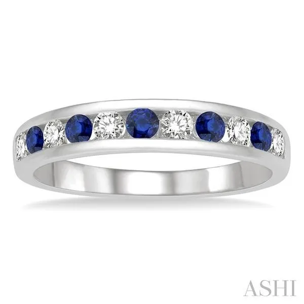 2.3 MM Sapphire and 1/4 Ctw Round Cut Diamond Precious Wedding Band in 14K White Gold Image 2 Adler's Diamonds Saint Louis, MO