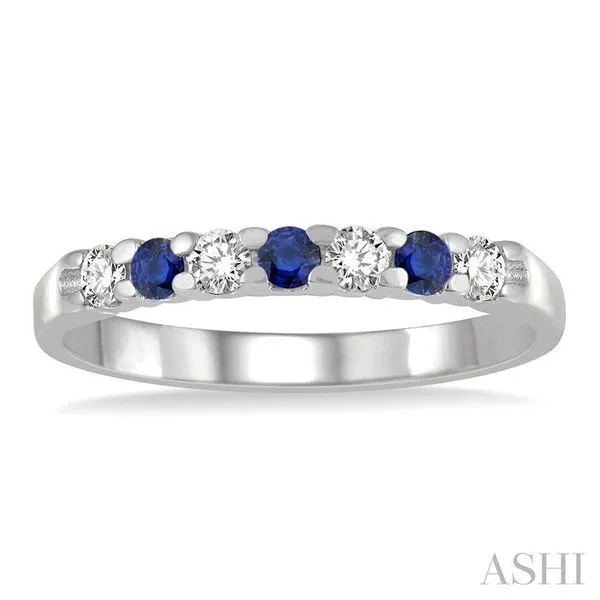2.3 MM Sapphire and 1/5 Ctw Round Cut Diamond Precious Wedding Band in 14K White Gold Image 2 Adler's Diamonds Saint Louis, MO