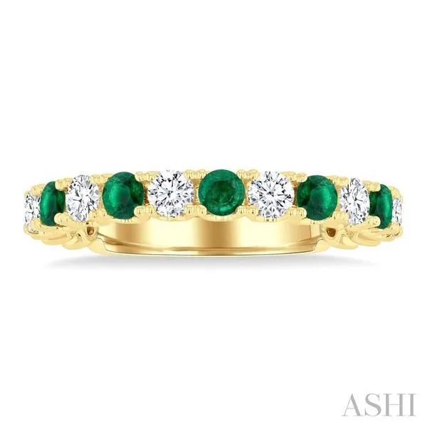 2.6 MM Emerald and 3/8 Ctw Round Cut Diamond Precious Wedding Band in 14K Yellow Gold Image 2 Adler's Diamonds Saint Louis, MO