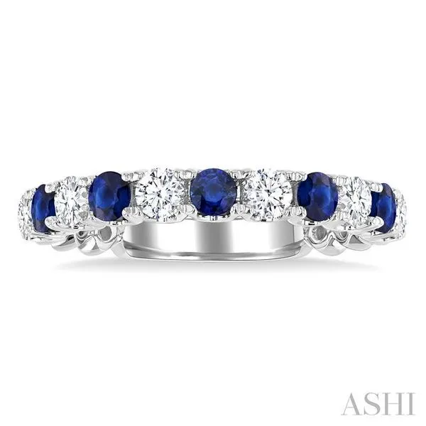 2.85 MM Sapphire and 1/2 Ctw Round Cut Diamond Precious Wedding Band in 14K White Gold Image 2 Adler's Diamonds Saint Louis, MO