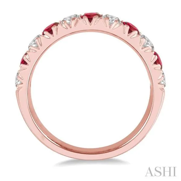 2.9 MM Ruby and 1/2 Ctw Round Cut Diamond Precious Wedding Band in 14K Rose Gold Image 2 Adler's Diamonds Saint Louis, MO