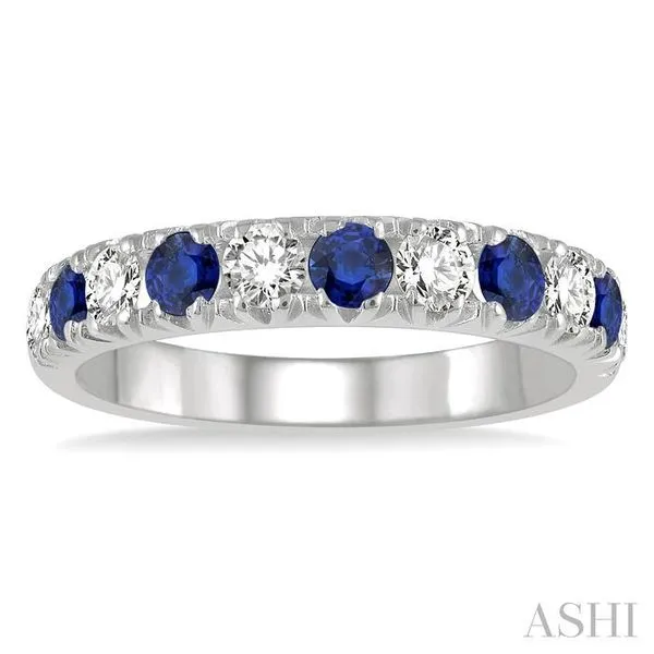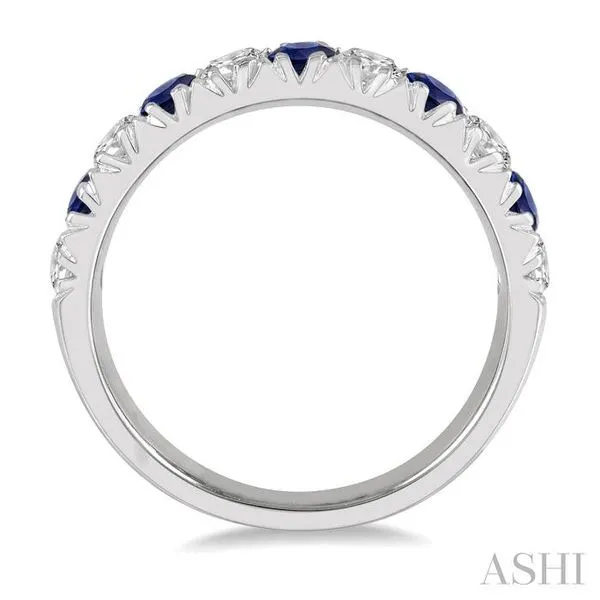 2.9 MM Sapphire and 1/2 Ctw Round Cut Diamond Precious Wedding Band in 14K White Gold Image 2 Adler's Diamonds Saint Louis, MO