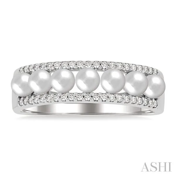 3 MM Cultured Pearl and 1/5 Ctw Round Cut Diamond Fashion Band in 14K White Gold Image 3 Adler's Diamonds Saint Louis, MO