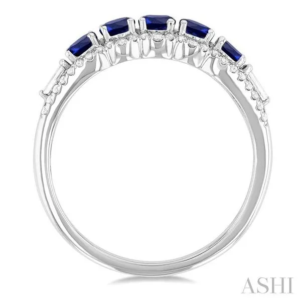 3.1 MM Round Sapphire and 1/4 Ctw Baguette and Single Cut Diamond 5-Stone Precious Ring in 14K White Gold Image 2 Adler's Diamonds Saint Louis, MO