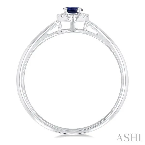 3.25 MM Round Sapphire and 1/20 Ctw Single Cut Diamond Halo Precious Ring in 10K White Gold Image 3 Adler's Diamonds Saint Louis, MO