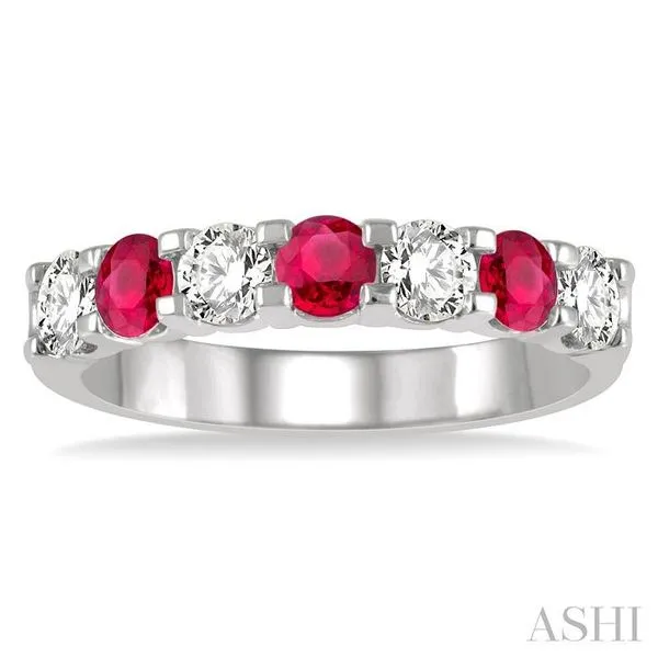 3.3 MM Ruby and 1/2 Ctw Round Cut Diamond Precious Wedding Band in 14K White Gold Image 2 Adler's Diamonds Saint Louis, MO