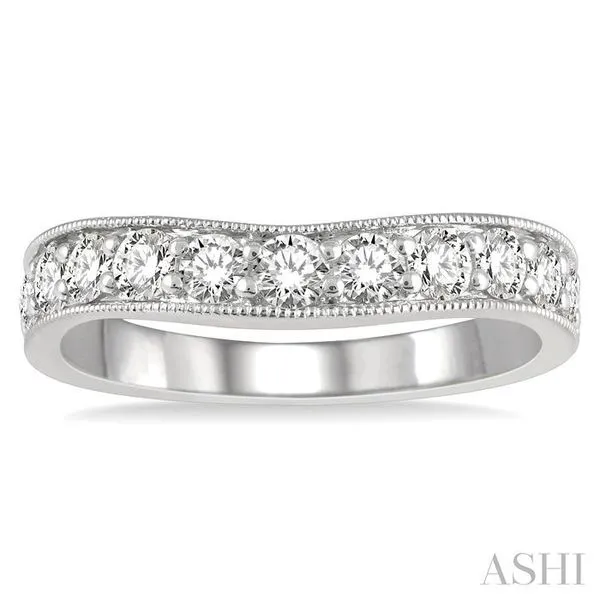 3. 3/4 Ctw Arched Round Cut Diamond Wedding Band in 14K White Gold