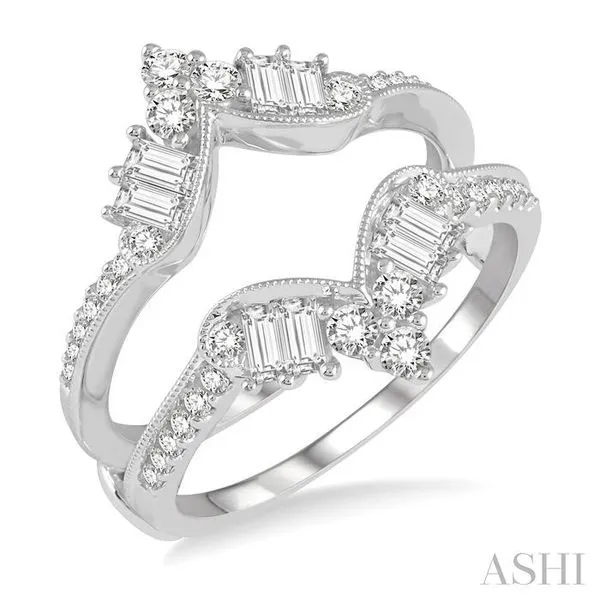 3/4 Ctw Chevron Center Baguette and Round Cut Diamond Insert Ring in 14K White Gold