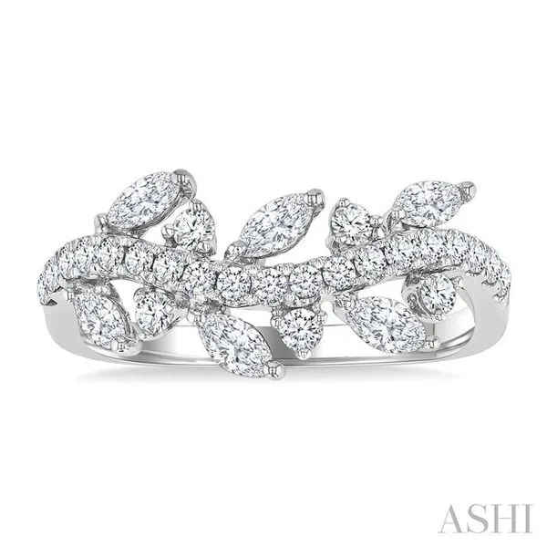 3/4 Ctw Curved Center Marquise and Round Cut Diamond Fashion Band in 14K White Gold Image 2 Adler's Diamonds Saint Louis, MO