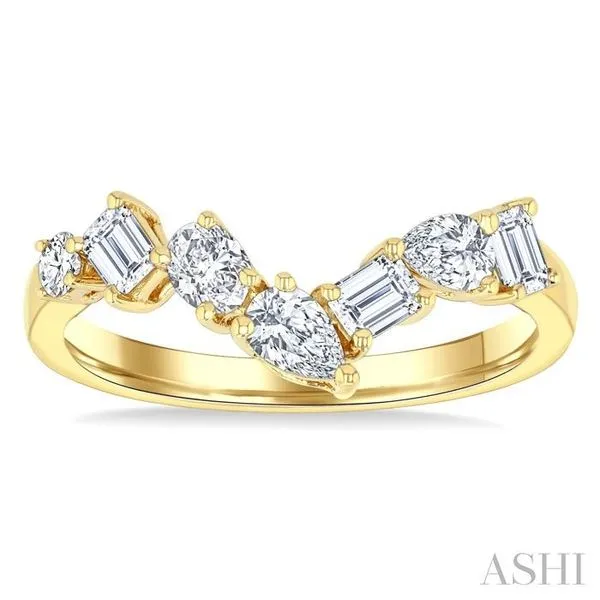 3/4 Ctw Mixed Cut Diamond Chevron Fashion Band in 14K Yellow Gold