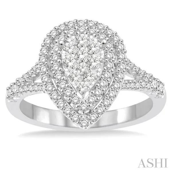 3/4 Ctw Pear shape Diamond Lovebright Diamond Ring in 14K White Gold Image 2 Adler's Diamonds Saint Louis, MO