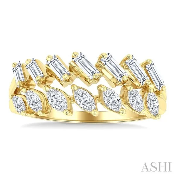 3/4 Ctw Split Twin Row Marquise and Baguette Cut Diamond Fashion Ring in 14K Yellow Gold Image 2 Adler's Diamonds Saint Louis, MO
