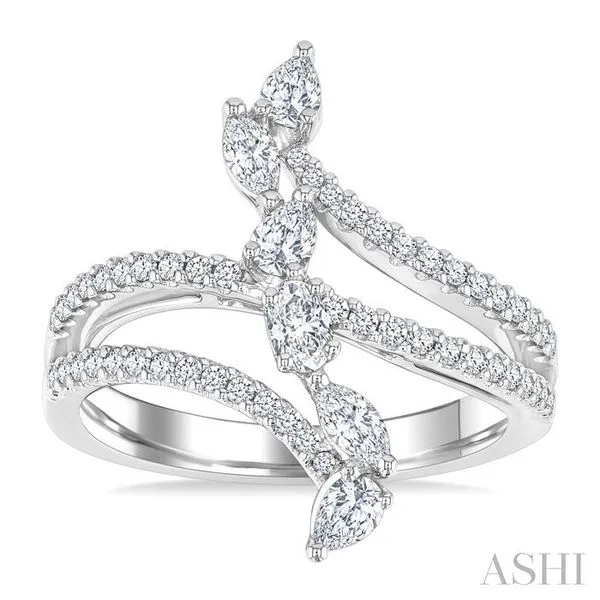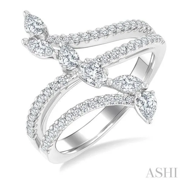 3/4 Ctw Three-Way Split Shank Mixed Diamond Cut Fashion Ring in 14K White Gold Adler's Diamonds Saint Louis, MO