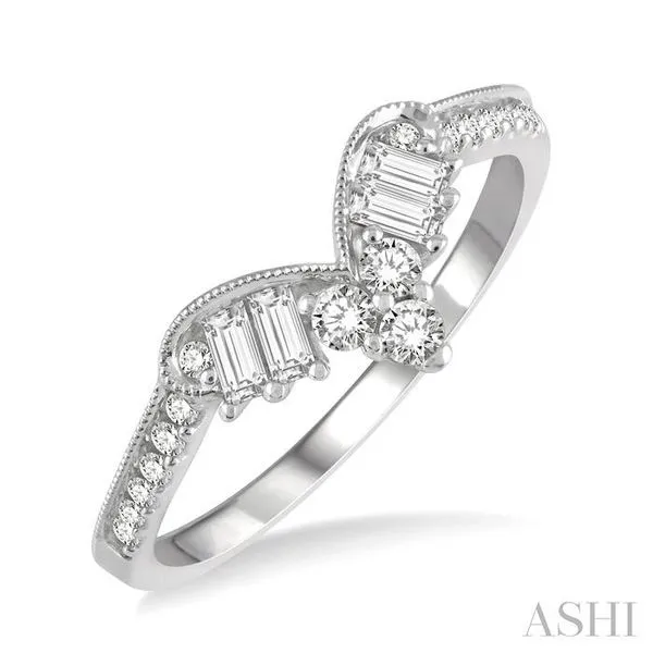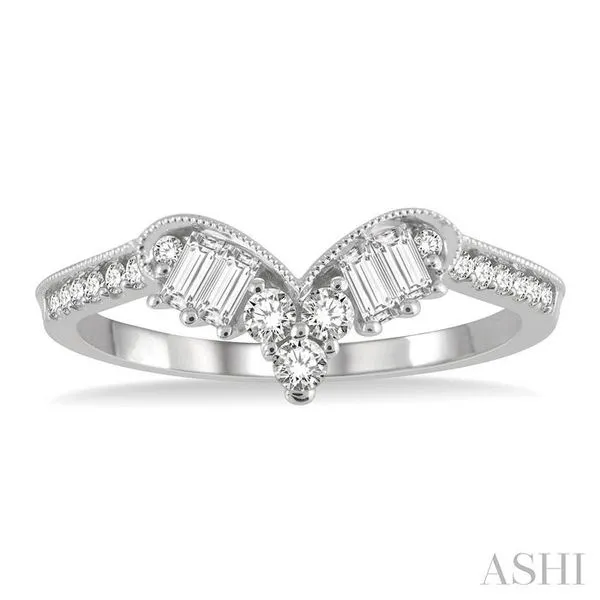 3/8 Ctw Chevron Center Baguette and Round Cut Diamond Wedding Band in 14K White Gold Image 2 Adler's Diamonds Saint Louis, MO