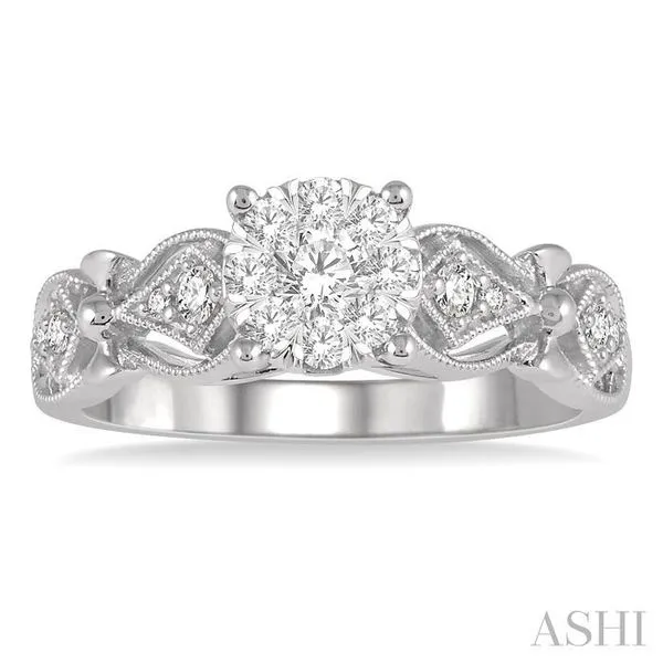 3/8 Ctw Circular Mount Lattice Lovebright Round Cut Diamond Ring in 14K White Gold Adler's Diamonds Saint Louis, MO