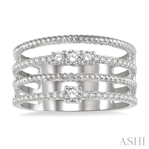 3/8 Ctw Rope and Round Diamond Multi Row Layered Fashion Ring in 14K White Gold Image 2 Adler's Diamonds Saint Louis, MO