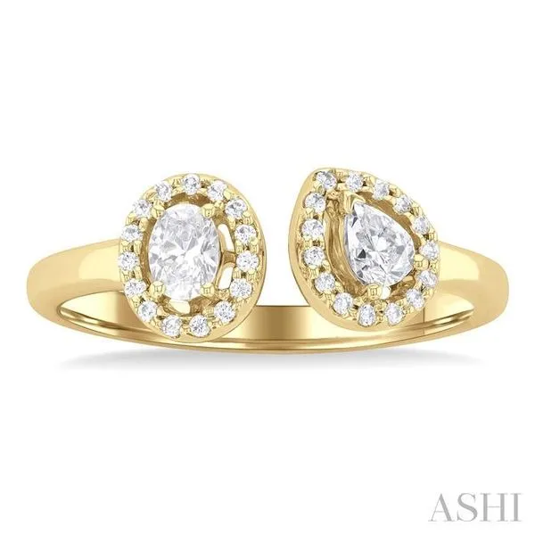 3/8 Ctw Toi Et Moi Pear, Oval and Round Cut Diamond Open Fashion Ring in 14K Yellow Gold Image 2 Adler's Diamonds Saint Louis, MO