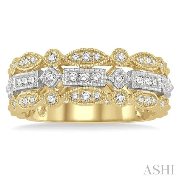 3/8 Ctw Two Tone Geometric Rows Round Cut Diamond Fashion Band in 14K Yellow and White Gold Adler's Diamonds Saint Louis, MO