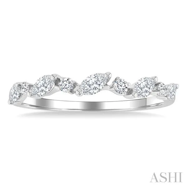 3/8 Ctw Wave Pattern Scatter Marquise and Round Cut Diamond Fashion Band in 14K White Gold
