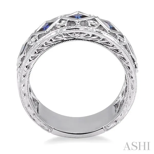 3x3 MM Princess Cut Sapphire and 1/4 Ctw Round Cut Diamond Precious Fashion Band in 14K White Gold Image 2 Adler's Diamonds Saint Louis, MO
