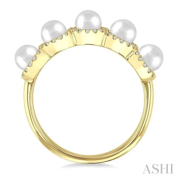 4 MM Round Shape Cultured Pearl and 1/5 Ctw Round Cut Diamond Halo Ring in 14K Yellow Gold Image 3 Adler's Diamonds Saint Louis, MO