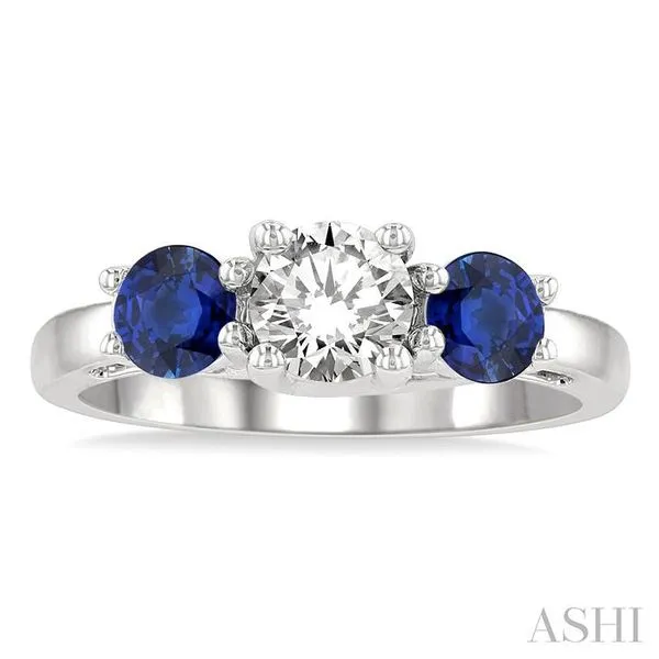 4.65 MM Round Shape Sapphire and 3/4 Ctw Past, Present and Future Round Cut Diamond Precious Ring in 14K White Gold Adler's Diamonds Saint Louis, MO