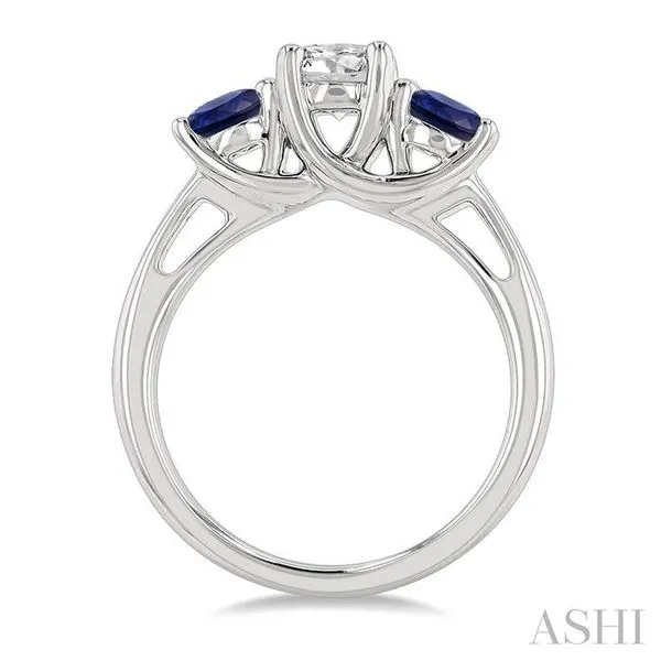 4.65 MM Round Shape Sapphire and 3/4 Ctw Past, Present and Future Round Cut Diamond Precious Ring in 14K White Gold Image 2 Adler's Diamonds Saint Louis, MO
