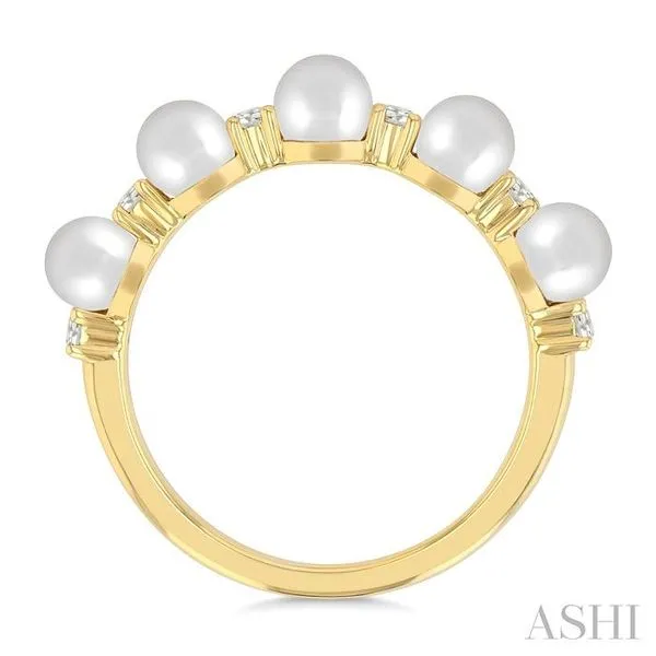 4MM Cultured Pearl and 1/6 Ctw Round Cut Diamond Fashion Ring in 14K Yellow Gold Image 3 Adler's Diamonds Saint Louis, MO
