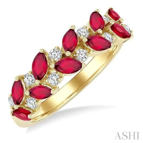4X2 MM Leafy Marquise Cut Ruby and 1/5 Ctw Round Cut Diamond Precious Band in 14K Yellow Gold Image 2 Adler's Diamonds Saint Louis, MO
