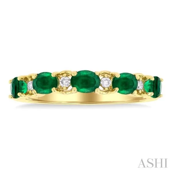 4x3 MM East-West Set Oval Cut Emerald and 1/20 Ctw Round Cut Diamond Precious Band in 14K Yellow Gold Image 2 Adler's Diamonds Saint Louis, MO