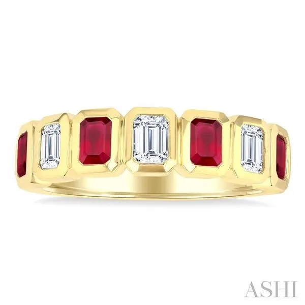 4X3 MM Octagon Shape Ruby and 5/8 Ctw Emerald Cut Diamond 7-Stone Bezel Set Precious Fashion Band in 14K Yellow Gold Image 2 Adler's Diamonds Saint Louis, MO