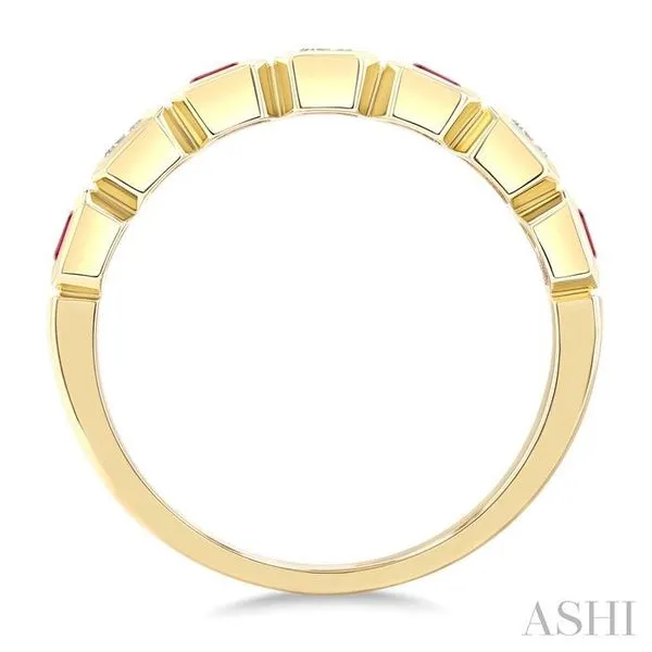 4X3 MM Octagon Shape Ruby and 5/8 Ctw Emerald Cut Diamond 7-Stone Bezel Set Precious Fashion Band in 14K Yellow Gold Image 3 Adler's Diamonds Saint Louis, MO