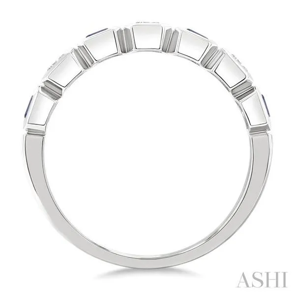 4X3 MM Octagon Shape Sapphire and 5/8 Ctw Emerald Cut Diamond 7-Stone Bezel Set Precious Fashion Band in 14K White Gold Image 3 Adler's Diamonds Saint Louis, MO