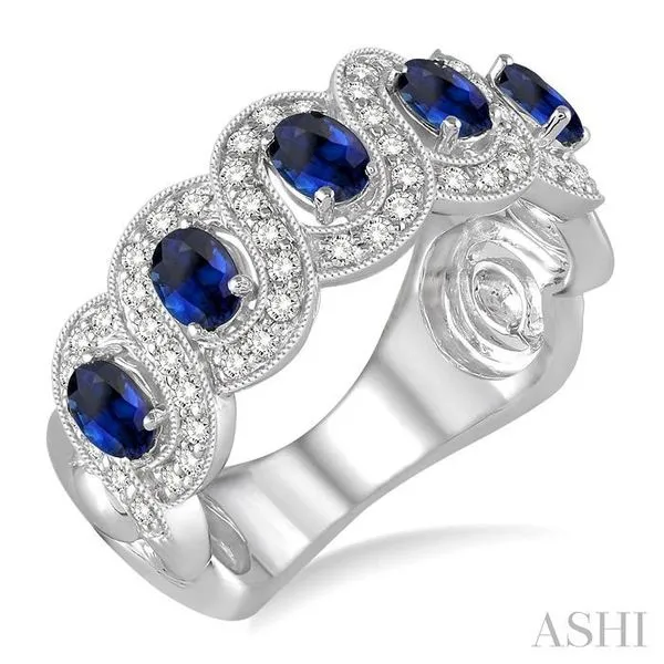 4x3 MM Oval Cut Sapphire and 1/2 Ctw Round Cut Diamond Precious Band in 14K White Gold Image 2 Adler's Diamonds Saint Louis, MO