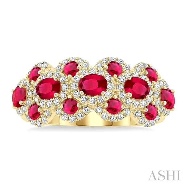 4X3 MM Oval Shape & 2.2 MM and 1/2 Ctw Round Cut Ruby and Round Cut Diamond Scalloped Edge Precious Ring in 14K Yellow Gold Image 2 Adler's Diamonds Saint Louis, MO