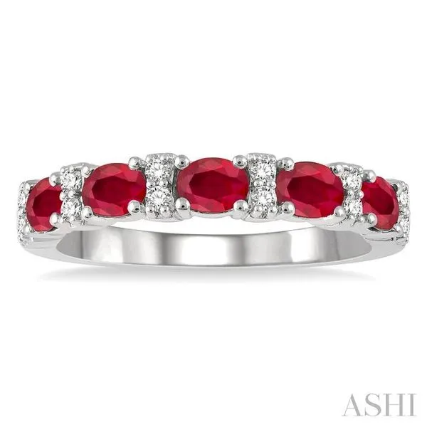4x3 MM Oval Shape Ruby and 1/6 Ctw Round Cut Diamond Precious Band in 14K White Gold Image 4 Adler's Diamonds Saint Louis, MO