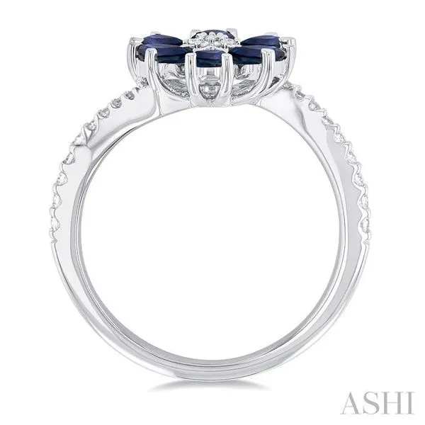 4X3 MM Pear Cut Floral Blossom Sapphire and 1/5 Ctw Round Cut Diamond Bypass Precious Ring in 14K White Gold Image 2 Adler's Diamonds Saint Louis, MO