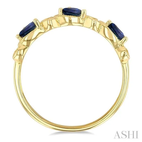 4x3 MM Pear Cut Sapphire and 1/10 Ctw Lattice Round Cut Diamond Precious Band in 14K Yellow Gold Image 3 Adler's Diamonds Saint Louis, MO