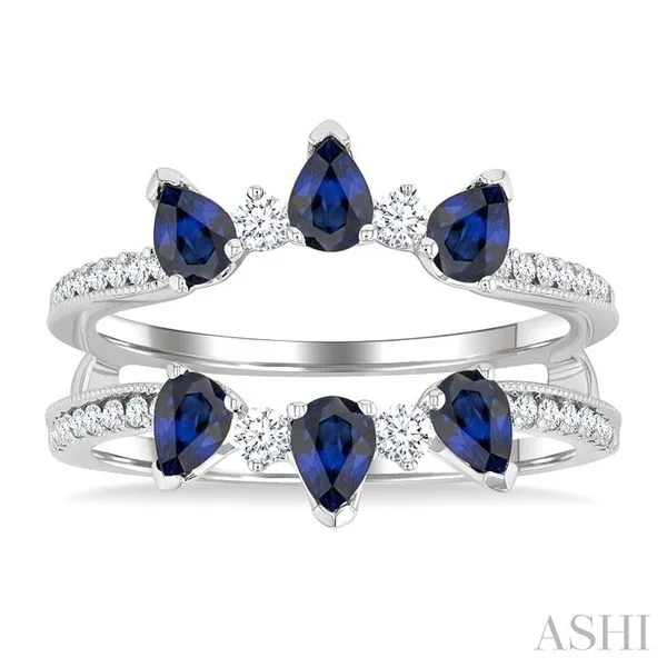 4x3 MM Pear Cut Sapphire and 1/3 Ctw Round Cut Diamond Precious Insert Ring in 14K White Gold Image 2 Adler's Diamonds Saint Louis, MO