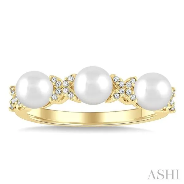 5 MM Cultured Pearl and 1/10 Ctw Round Cut Diamond Fashion Band in 14K Yellow Gold Image 2 Adler's Diamonds Saint Louis, MO