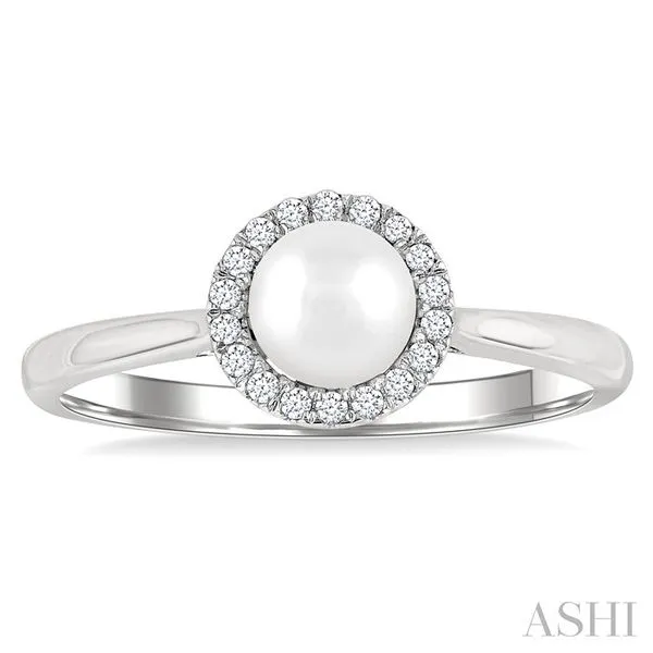 5 MM White Cultured Pearl and 1/20 Ctw Round Cut Diamond Halo Ring in 10K White Gold Image 2 Adler's Diamonds Saint Louis, MO