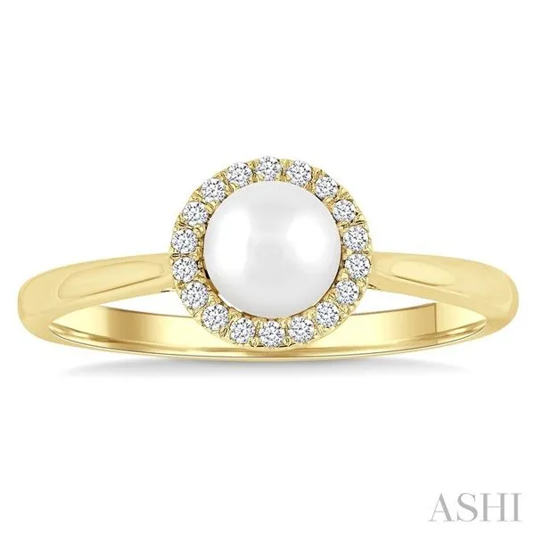 5 MM White Cultured Pearl and 1/20 Ctw Round Cut Diamond Halo Ring in 10K Yellow Gold Image 2 Adler's Diamonds Saint Louis, MO